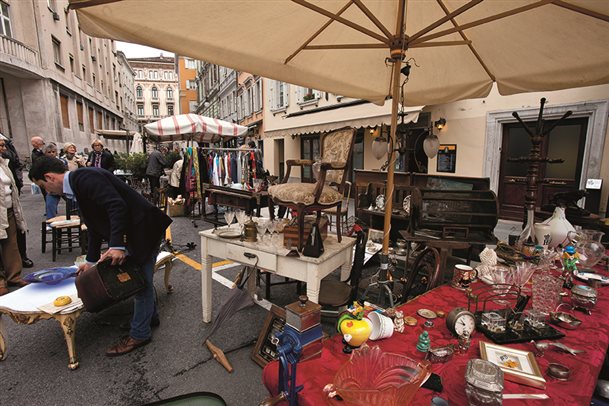 Passeggiando da Corso Italia a piazza Unità, si passa per piazza della Borsa. Qui, prendendo via della Portizza, si entra nell'antico Ghetto Ebraico dove trovi rigatterie, negozi di antiquariato e ogni terza domenica del mese si svolge pure il mercatino dell'usato e antiquariato.