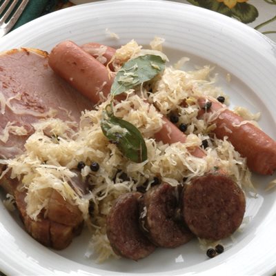 700 g Sauerkraut (man kann es auch bereits fertig kaufen - wenn Sie es selbst zubereiten möchten, finden Sie nachstehend das Rezept dazu)