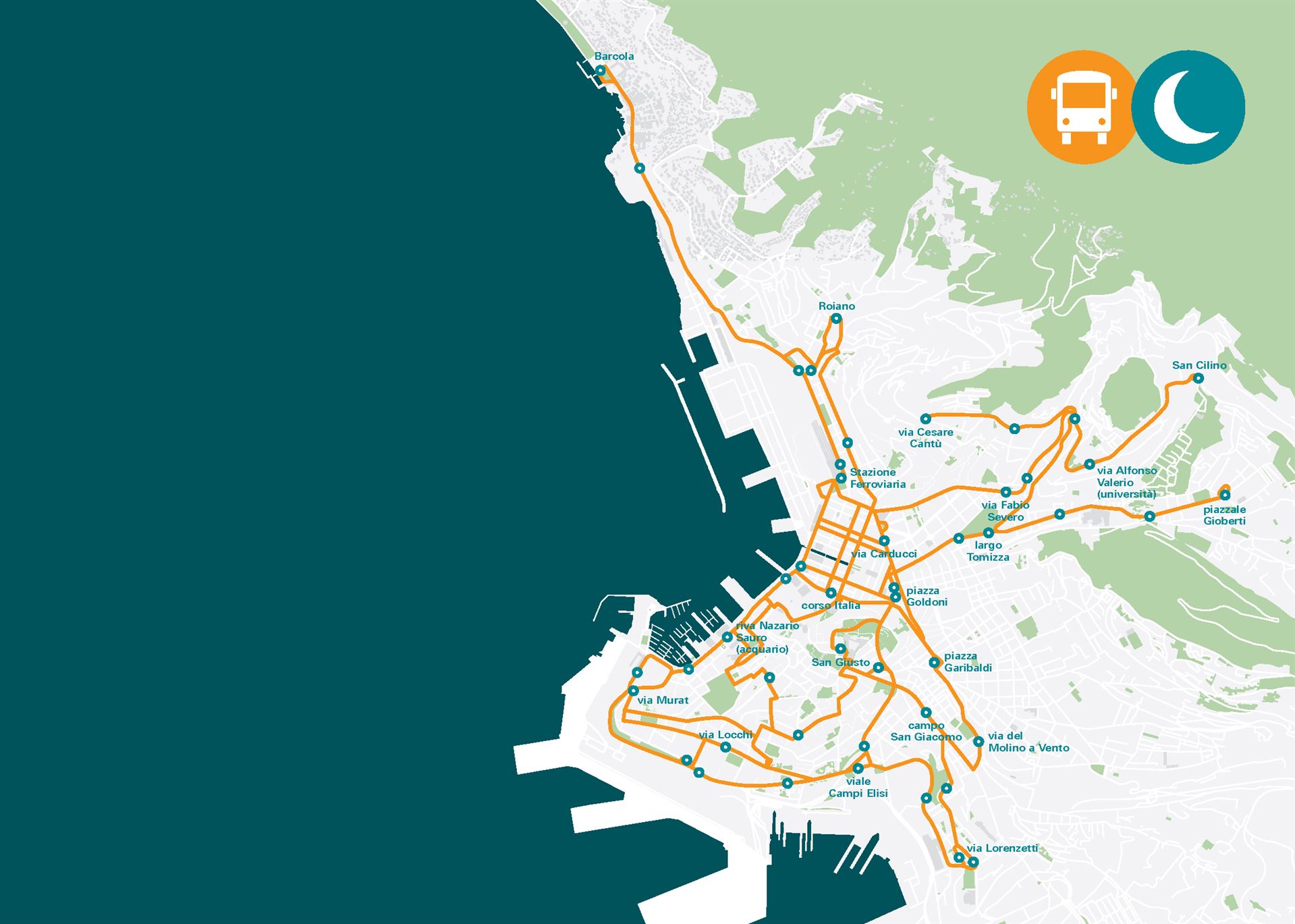 NOTTURNO is the result of the collaboration between Trieste Trasporti, Tpl Fvg, the Autonomous Region of Friuli Venezia Giulia and the University of Trieste. The NOTTURNO service will operate on Wednesday, Fridays and Saturdays from 10:00 p.m. to 4:00 a.m..