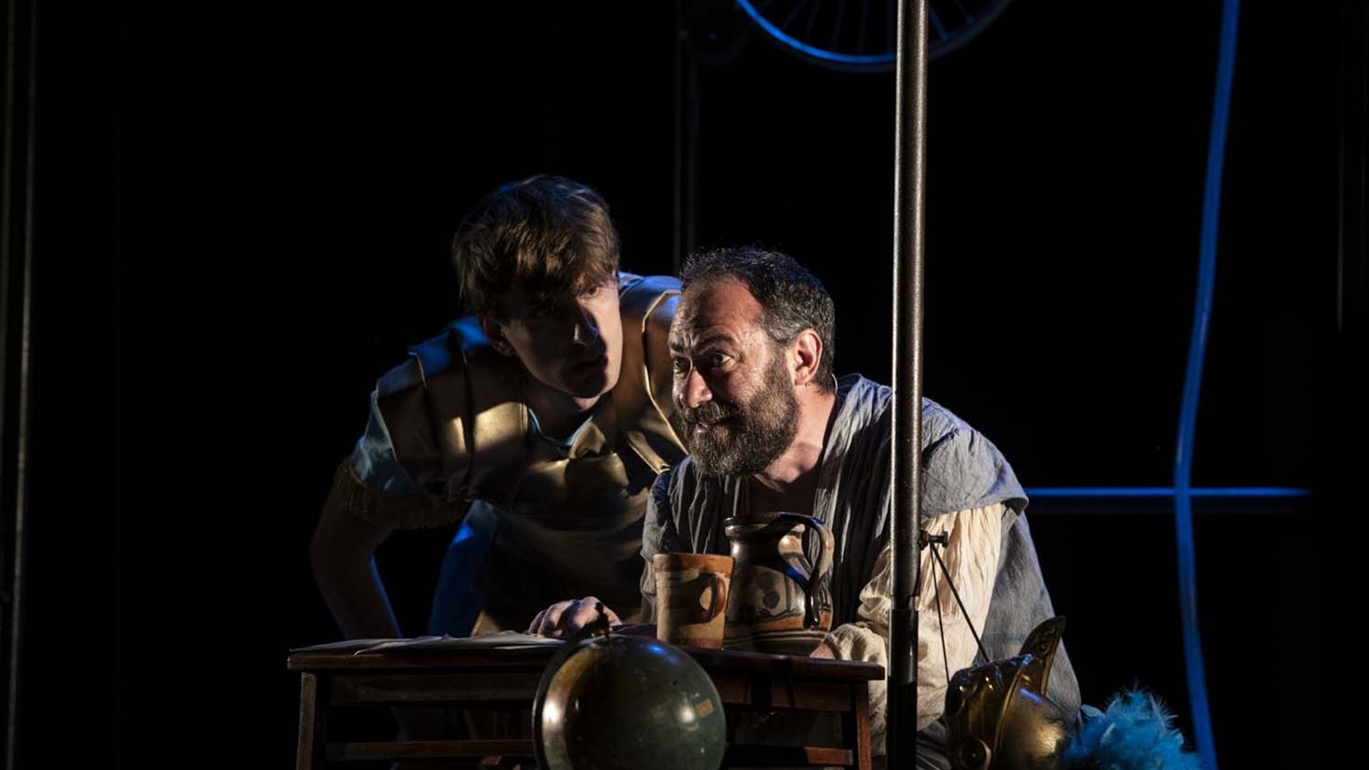 Sul palco l’istrionico, vulcanico, il canta e cunta storie, Mario Incudine protagonista assoluto di questo percorso interiore che presta il suo carisma e la sua sensibilità a un racconto che scava nelle fragilità del genio. Accanto a lui le musiche sostenute dalla fisarmonica, l’organetto e il tamburo di Antonio Vasta, e la spalla muta, ma essenziale, di Tommaso Garrè, incolpevole soldato romano, che si trova a compiere la missione più complessa della sua carriera militare: neutralizzare il genio siracusano, vantaggio competitivo intollerabile per gli alleati di Cartagine da sconfiggere. Come sottolineato nelle note di regia di Alessio Pizzech, lo spettacolo nasce da un'esigenza profonda legata alla nostra contemporaneità: in un momento storico dominato dall'odio e dai conflitti, dove spesso la ricerca scientifica viene messa al servizio della distruzione di vite umane, le parole dello scienziato siracusano risuonano come un monito necessario. L'obiettivo è ricordare che la bellezza e il pensiero che scaturisce dal sapere devono restare gli unici strumenti capaci di dare forma a un futuro possibile per l'umanità.
