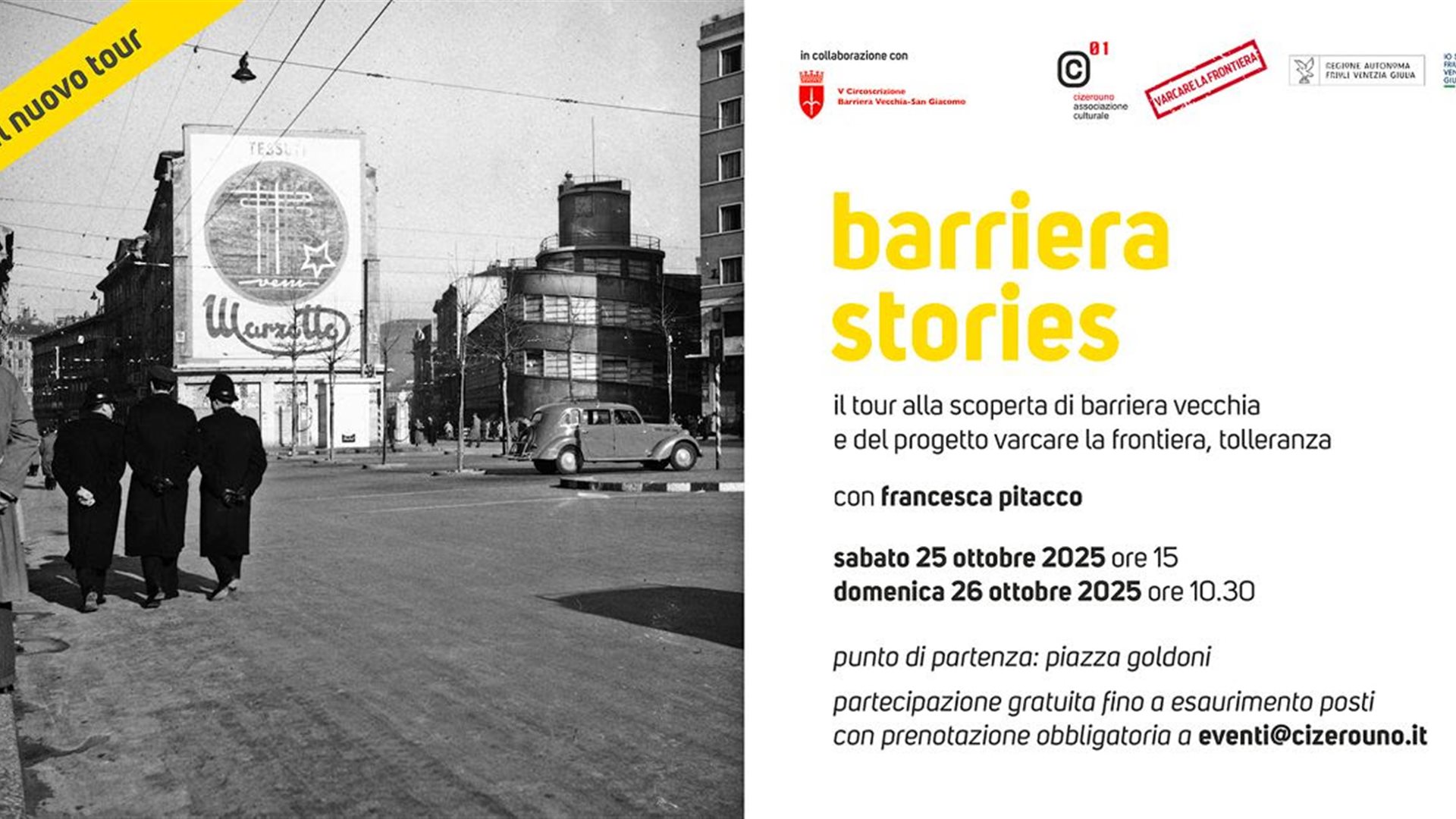 Sabato 25 ottobre 2025 alle ore 16 al Mercato Coperto sarà presentata la dodicesima edizione di Varcare la Frontiera, la rassegna promossa da Cizerouno e realizzata con il sostegno della Regione Autonoma Friuli Venezia Giulia e la coorganizzazione del Comune di Trieste.