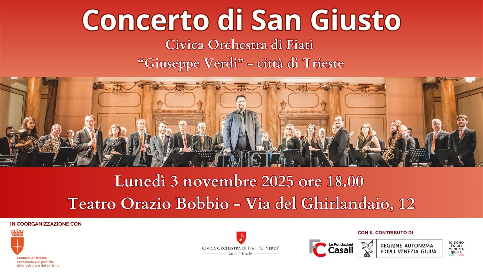 La Civica Orchestra di fiati "G. Verdi" - Città di Trieste è lieta di presentare il suo tradizionale Concerto di San Giusto per celebrare insieme il Santo Patrono della nostra Città.