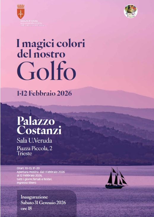 Sabato 31 gennaio alle ore 18:00 presso la Sala Umberto Veruda (Piazza Piccola, 2 - Trieste) sarà inaugurata la mostra “I magici colori del nostro Golfo” a cura del Gruppo Artisti Triestini Rivel'Art.