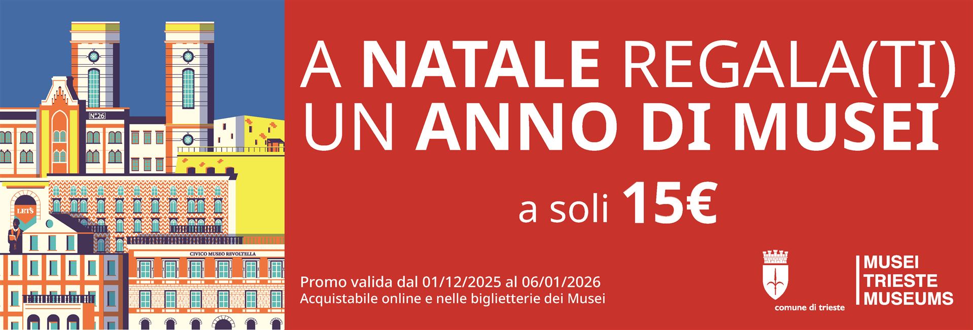 Dal 1° dicembre 2025 al 6 gennaio 2026 inoltre sarà possibile acquistare la tessera annuale per l'accesso a tutti i Musei comunali a soli 15 euro > discover-trieste.it/vivi/trieste-now/a-natale-regala-un-anno-di-musei