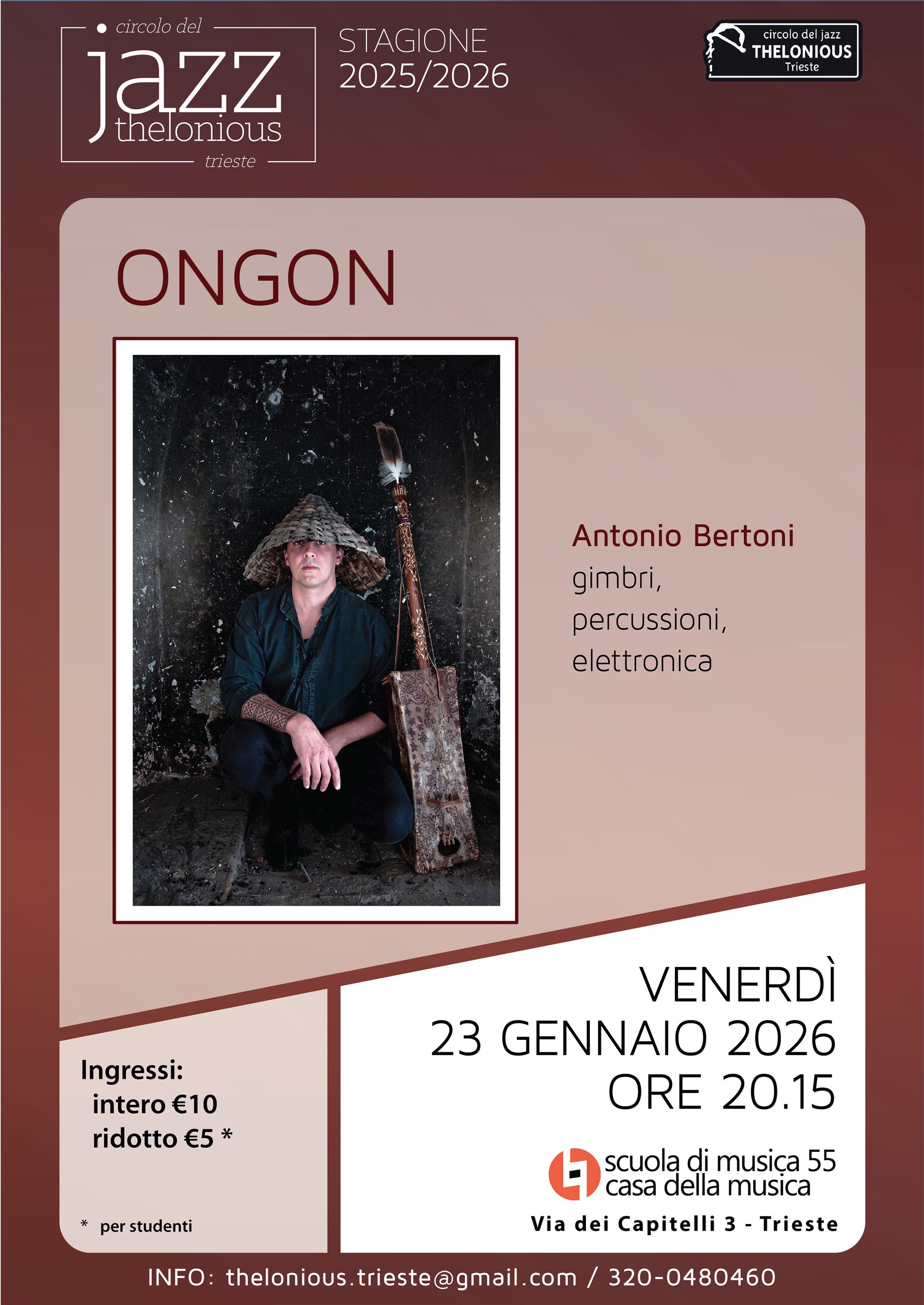 Ongon è il nome d’arte usato da Antonio Bertoni, polistrumentista che si muove tra strumenti diversi anche di tradizioni lontane nel tempo e nello spazio, tra stili e influenze differenti: dalla musica gnawa al progressive, dalla psichedelia alle sovrapposizioni elettroacustiche. Nei suoi dischi e nel set proposto si snodano musiche ipnotiche, rituali e incantatorie, con richiami alle tradizioni nordafricane e un atteggiamento disinvolto e aperto.