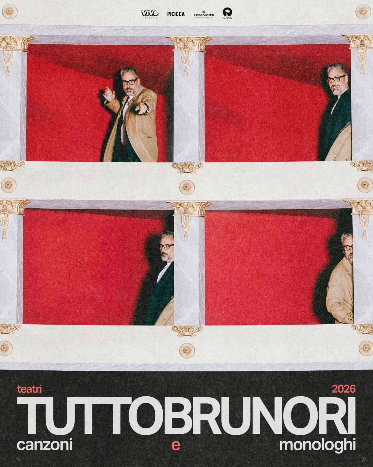 Dopo un anno ricco di musica, riconoscimenti e nuove avventure, e mentre si prepara ai sempre più imminenti appuntamenti live in Europa, Brunori Sas guarda al 2026 annunciando la tournée teatrale TUTTOBRUNORI, CANZONI E MONOLOGHI.
