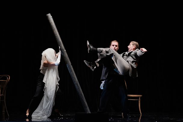 Tre attori ripassano le scene dello spettacolo che di lì a poco andranno a rappresentare: l’Amleto di Shakespeare, riscritto in chiave comica. Ne nascono divertenti fraintendimenti che fanno riaffiorare la strana natura del legame tra i tre… Lo spettacolo si ispira alle condizioni degli artisti ebrei ai tempi della deportazione e della permanenza nel campo di Westerbork.