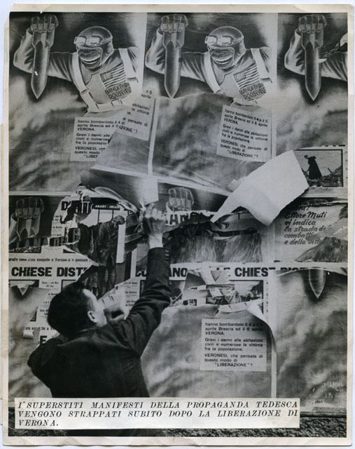 I manifesti superstiti della stampa tedesca vengono rimossi a Verona