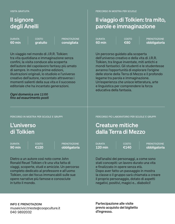 Un percorso guidato alla scoperta dell’universo creativo e della vita di J.R.R. Tolkien, tra lingue inventate, miti antichi e mondi fantastici. Gli studenti e le studentesse avranno l’opportunità di esplorare l’origine delle storie della Terra di Mezzo e il profondo legame tra parola e immaginazione. Un’esperienza che unisce letteratura, arte e linguistica per comprendere la forza educativa della fantasia.